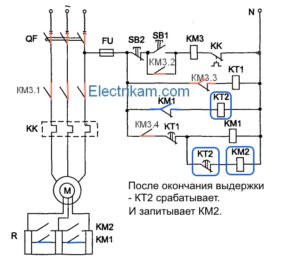 23 Электрические машины › Электрические машины переменного тока › Схема пуска асинхронного двигателя с фазным ротором, функции времени.