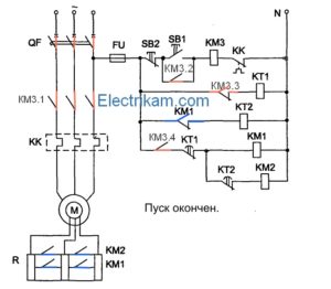 25 Электрические машины › Электрические машины переменного тока › Схема пуска асинхронного двигателя с фазным ротором, функции времени.