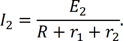 Теперь положим обратную ситуацию: в электрической цепи действует только один источник ЭДС E2, а источник E1 присутствует, но не производит ток. Тогда ток в цепи будет равен