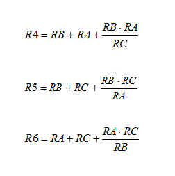 Преобразование треугольника сопротивлений в эквивалентную звезду