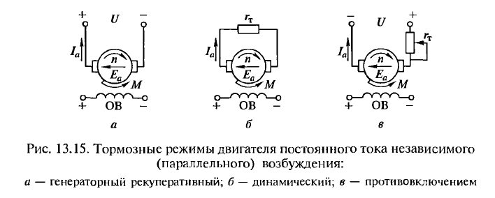 Помимо основного (двигательного) режима работы в двигателях постоянного тока независимого (параллельного) возбуждения возможны тормозные режимы.