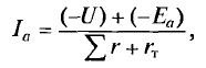 Чтобы уменьшить время выбега двигателя, применяют торможение противовключением. С этой целью изменяют полярность напряжения на клеммах обмотки якоря (полярность клемм обмотки возбуждения должна остаться прежней) и напряжение питания обмотки якоря становится отрицательным (- U). Но якорь двигателя под действием кинетической энергии вращающихся масс электропривода сохраняет прежнее (положительное) направление вращения, и так как направление магнитного потока не изменилось, то ЭДС якоря Еа также не меняет своего направления и действует согласно напряжению (-U), при этом ток якоря создается суммой напряжения сети U и ЭДС якоря Еа