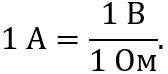 Интерпретировать закон Ома для участка цепи можно следующим образом: если к концам проводника сопротивлением R = 1 Ом приложено напряжение U = 1 В, тогда величина тока I в проводнике будет равна 1 А