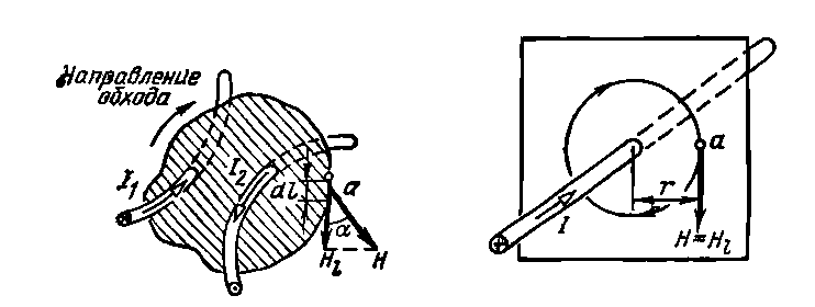 Магнитная индукция и напряженность поля в отдельных точках, расположенных на контуре, могут иметь или различные или одинаковые значения Допустим, что в точке а вектор индукции и пропорциональный ему вектор напряженности поля образует с элементом длины контура dl угол α. При этом HL = H cosα будет представлять собой касательную к контуру составляющую вектора напряженности магнитного поля. Магнитное напряжение HLdl на элементарном участке контура dl положительно, если направление вектора НL совпадает c выбранным направлением обхода контура, в противном случае оно будет отрицательным.